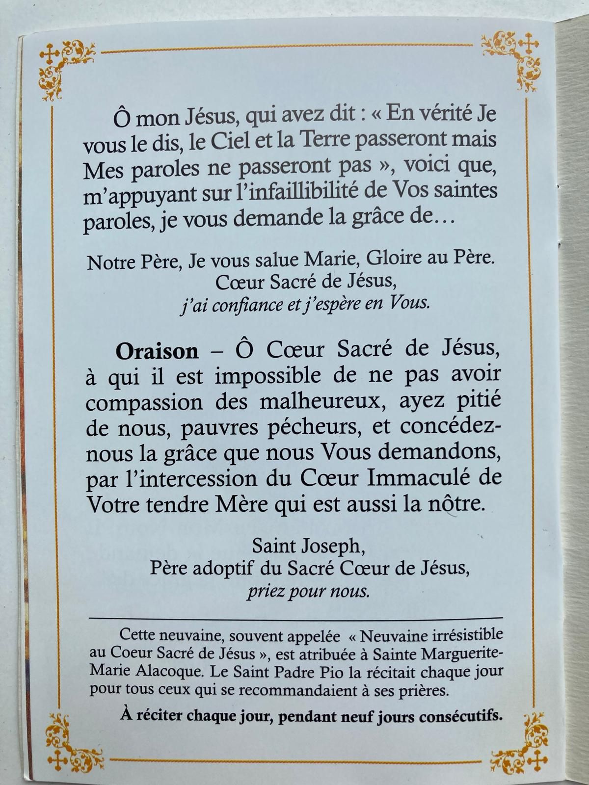 Neuvaine attribuée à sainte Marguerite-Marie Alacoque, récitée par saint Padre Pio.