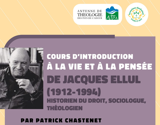 L’Antenne de théologie des Pays de l’Adour (ATPA) propose une formation de deux jours sur Jacques Ellul, par Patrick Chastenet, au Berceau de St Vincent de Paul. Cette formation n’est pas réservée aux étudiants de l’ATPA : elle est ouverte à tous.