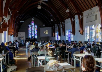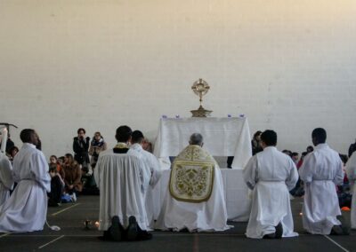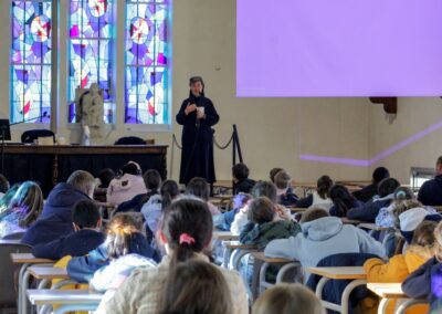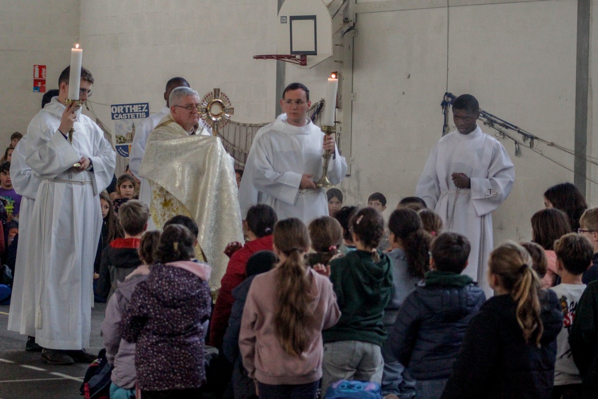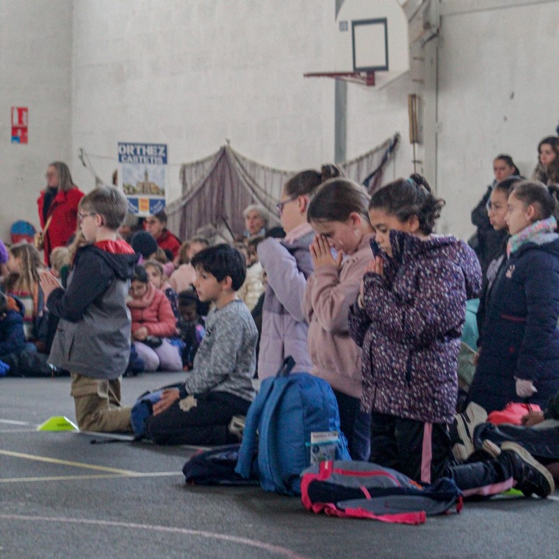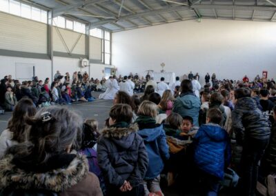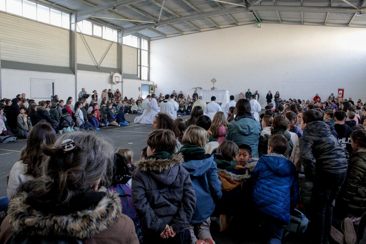 La journée s’est achevée par un temps d’adoration organisé dans le gymnase, la chapelle de l’établissement n’étant pas assez grande au regard du nombre d’enfants présents. Pour beaucoup, c’était une première adoration : un moment simple, silencieux et profondément marquant.