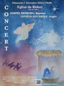 Dimanche 7 décembre 2025 à 17h, deux chorales s’associent pour un concert unique à l’église de Bidart. Sur la trajectoire de Noël, Gospel Denbora de Bayonne et le Chœur des Anges d’Anglet unissent leurs voix pour un concert unique à l’église de Bidart, avec une soixantaine de choristes et de belles surprises.