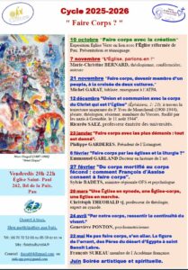 Toutes les infos ainsi que l’enregistrement des conférences sont disponibles sur le site de Foi et Culture : foietculture64.fr – Ouvert à tous – libre participation aux frais – Prochaine rencontre : vendredi 23 janvier 2026.