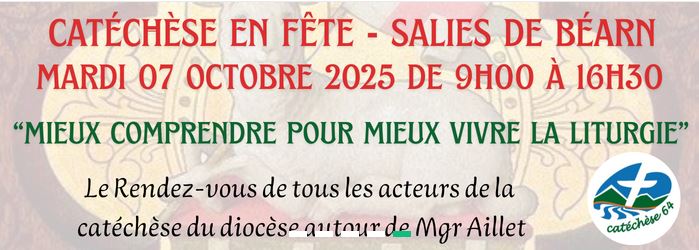 Le Service diocésain de la catéchèse invite tous les acteurs de la catéchèse du diocèse à sa journée « Catéchèse en fête », présidée par Mgr Aillet, mardi 7 octobre 2025, de 9h à 16h30, à Salies-de-Béarn (salles paroissiales rue Mgr A Darricades) sur le thème : « mieux comprendre pour mieux vivre la liturgie ».