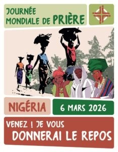 Vendredi 6 mars 2026 à 18h, au Temple de Bayonne, le groupe Bayonne-Biarritz de la JMP 2026 (catholiques, Eglise Protestante Unie, orthodoxes) organise une célébration où les femmes chrétiennes du Nigéria nous invitent à prier avec elles autour du thème : « Venez ! Je vous donnerai le repos » (Mt 11.28).