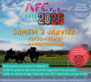 Samedi 3 janvier 2026, de 13h30 à 16h30, les Associations Familiales Catholique Pau-Béarn invitent à venir partager un moment convivial avec les familles de Pau à l’Hippodrome de Pau. Cet événement est ouvert à tous, et n’hésitez pas à venir avec les grands-parents de passage !