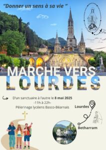 La Pastorale des Jeunes du Diocèse de Bayonne Lescar et Oloron organise un pèlerinage de Pau (et non plus Bétharram) à Lourdes pour les lycéens basco-béarnais, le jeudi 8 mai 2025, de 8h à 22h.