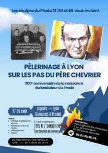 Du lundi 27 au mercredi 29 avril 2026, à l’occasion du 200ᵉ anniversaire de la naissance du fondateur du Prado, les équipes du Prado 31, 64 et 65 organisent un pèlerinage fraternel et spirituel au cœur de Lyon, sur les pas du Père Chevrier, là où est né et s’est enraciné le Prado. Trois jours pour marcher ensemble, prier, découvrir, et raviver l’élan missionnaire hérité du Père Chevrier.—