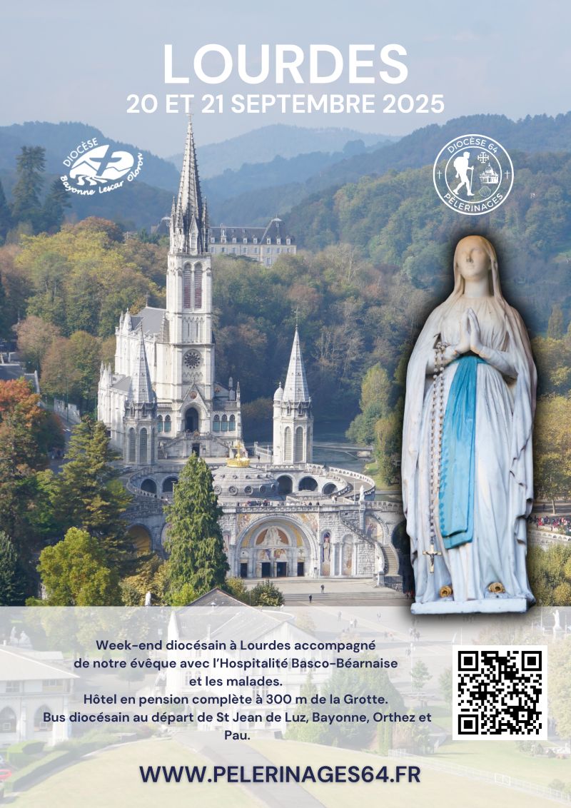 Le pèlerinage diocésain à Lourdes aura lieu dimanche 21 septembre 2025, dans le cadre du pèlerinage de l’Hospitalité Basco Béarnaise qui emmène 350 malades à Lourdes.
