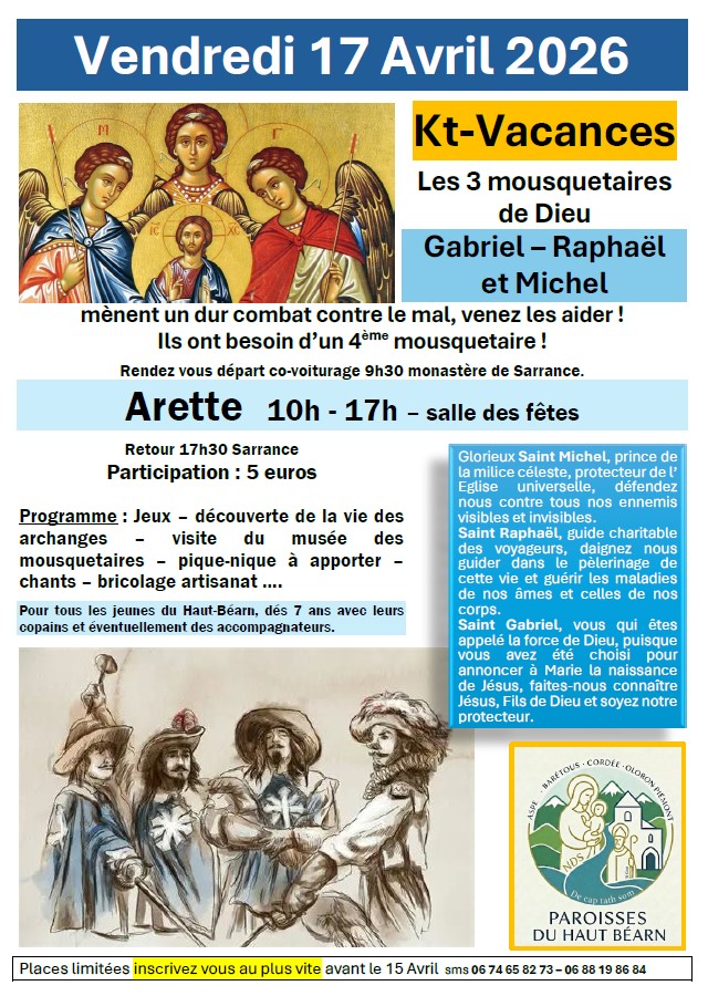 Pour les petits et les plus grands, les catéchistes et les Frères de Sarrance proposent une journée KT vacances, le vendredi 17 avril 2026, de 10h à 17h, à Arette.