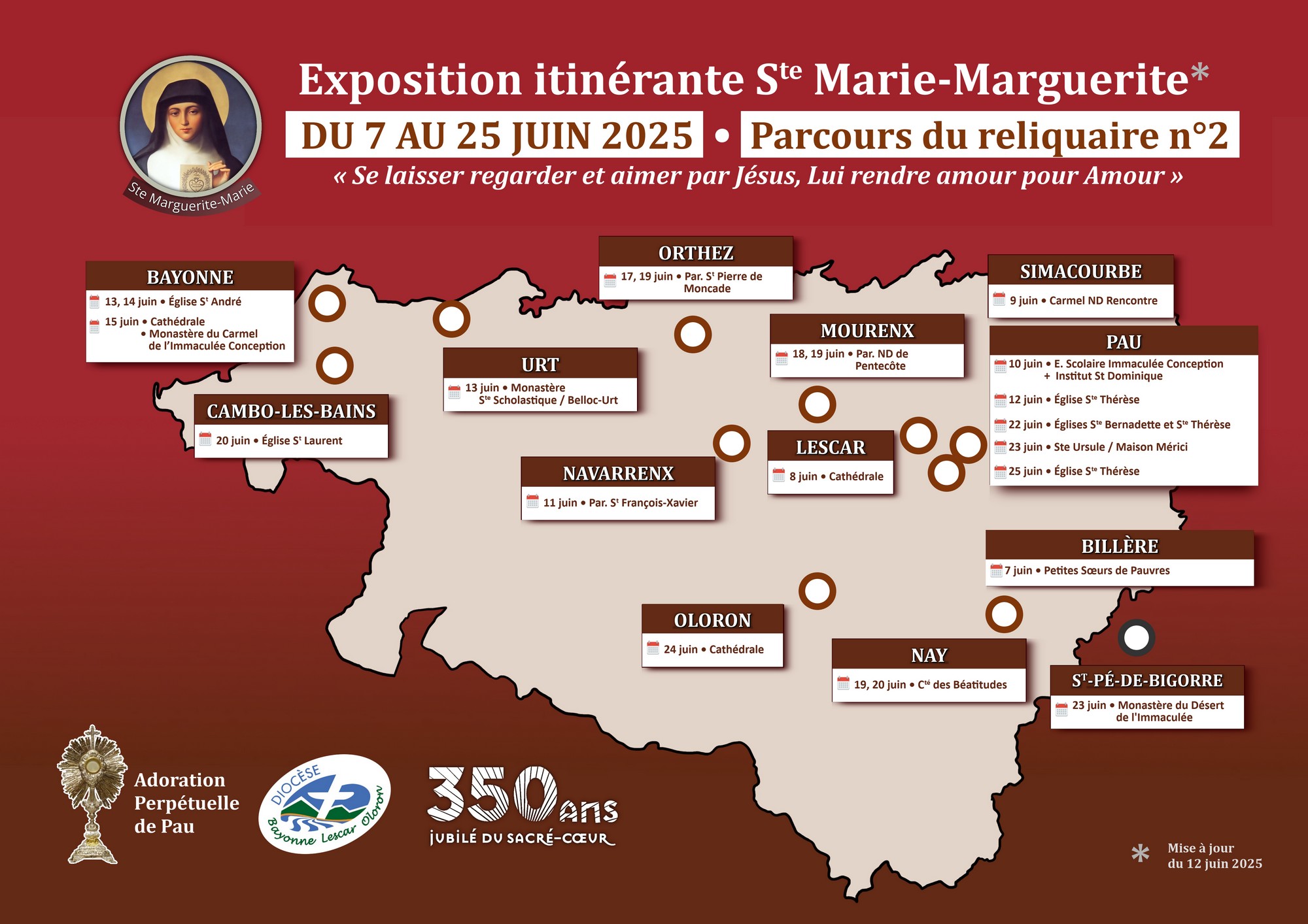 Du samedi 7 juin au mercredi 25 juin 2025, l’Adoration perpétuelle de Pau se joint au Sanctuaire du Sacré Cœur de Paray-le-Monial pour vivre le Jubilé des 350 ans des apparitions de Jésus à Ste Marguerite-Marie Alacoque.