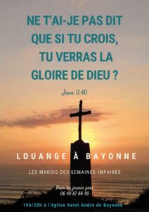 Le groupe de louange de l’agglomération de Bayonne-Anglet-Biarritz est né d’un besoin pour les jeunes pros aux vies bien remplies de donner du temps au Seigneur et Lui rendre grâce pour ses bienfaits.
