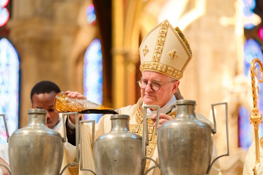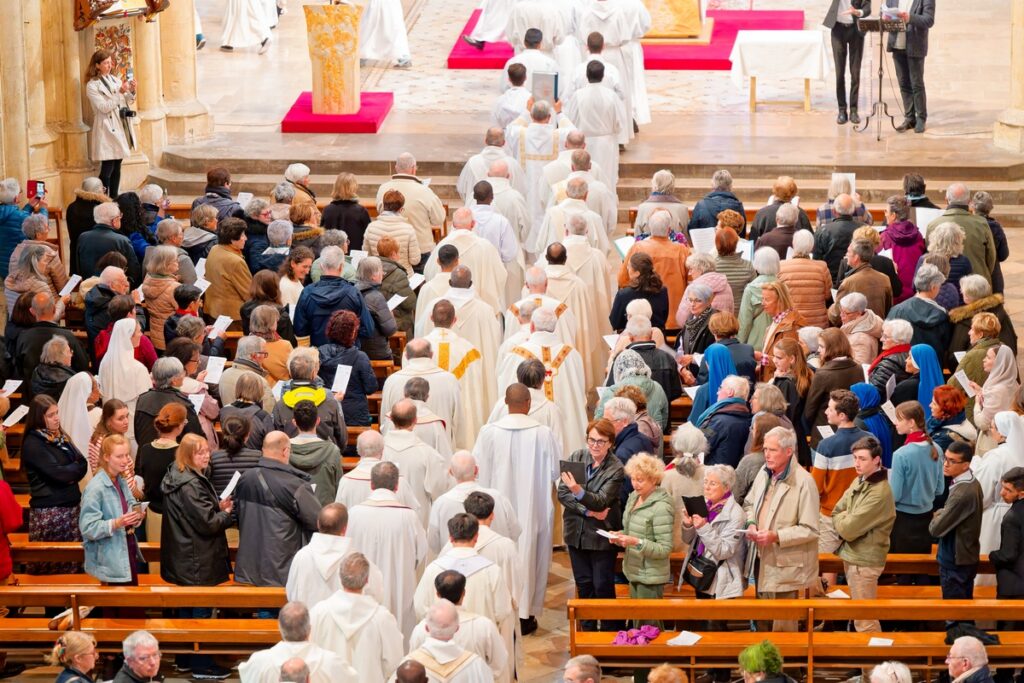 La messe chrismale s’est déroulée mardi 15 avril à la cathédrale Sainte-Marie de Bayonne, en présence de plus de 150 prêtres, les diacres et les séminaristes du diocèse, et de nombreux laïcs.