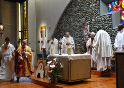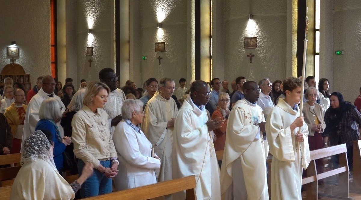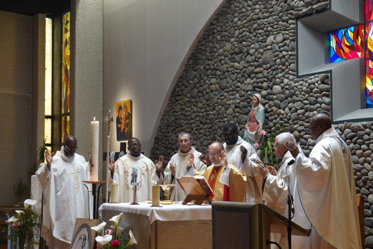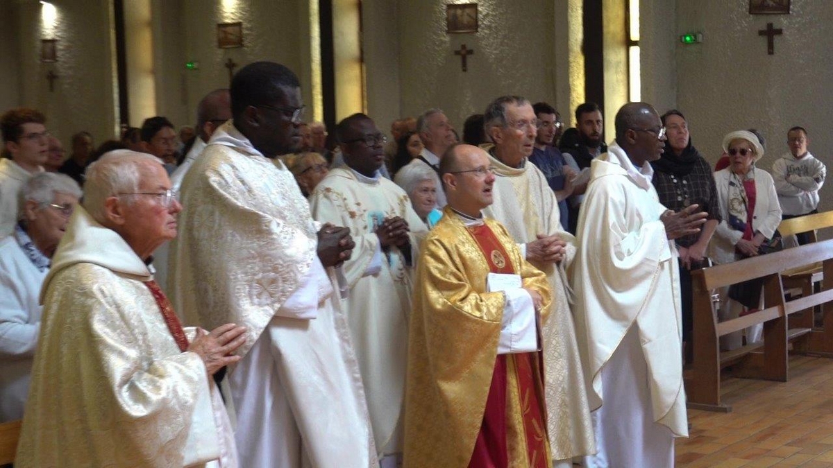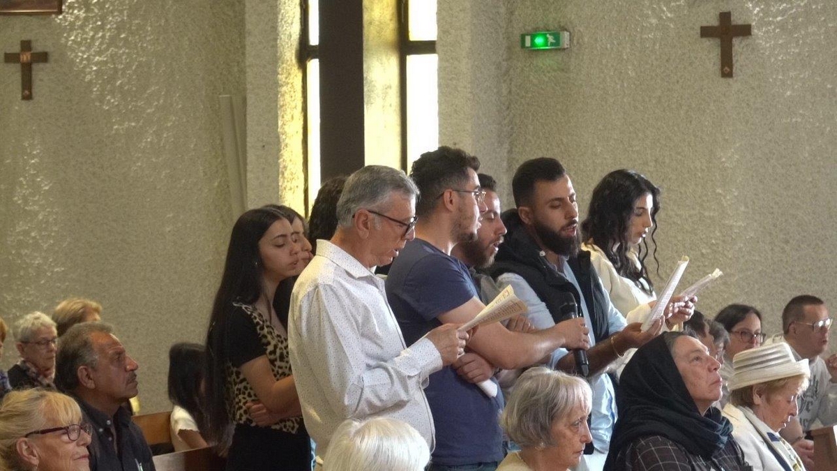 La messe a été célébrée selon le rite latin en l’absence du prêtre chaldéen retenu à l’étranger pour des raisons familiales. Elle a été présidée par le Père William-Marie Merchat, délégué du diocèse de Nîmes à l’Oeuvre d’Orient, enseignant à l’Institut Jean de la Croix, entouré du Père Sylvain Dansou, curé de la paroisse, des Pères de Bétharram de la communauté de la maison Saint-Michel, voisine : le Père Hervé Kouamé, supérieur, le Père Firmin Bourguinat et le Père Jean-Claude Djiraud, ainsi que du Père Carme Paul Le Camus et du Père Jean-Elysée de la communauté des Béatitudes de Nay.