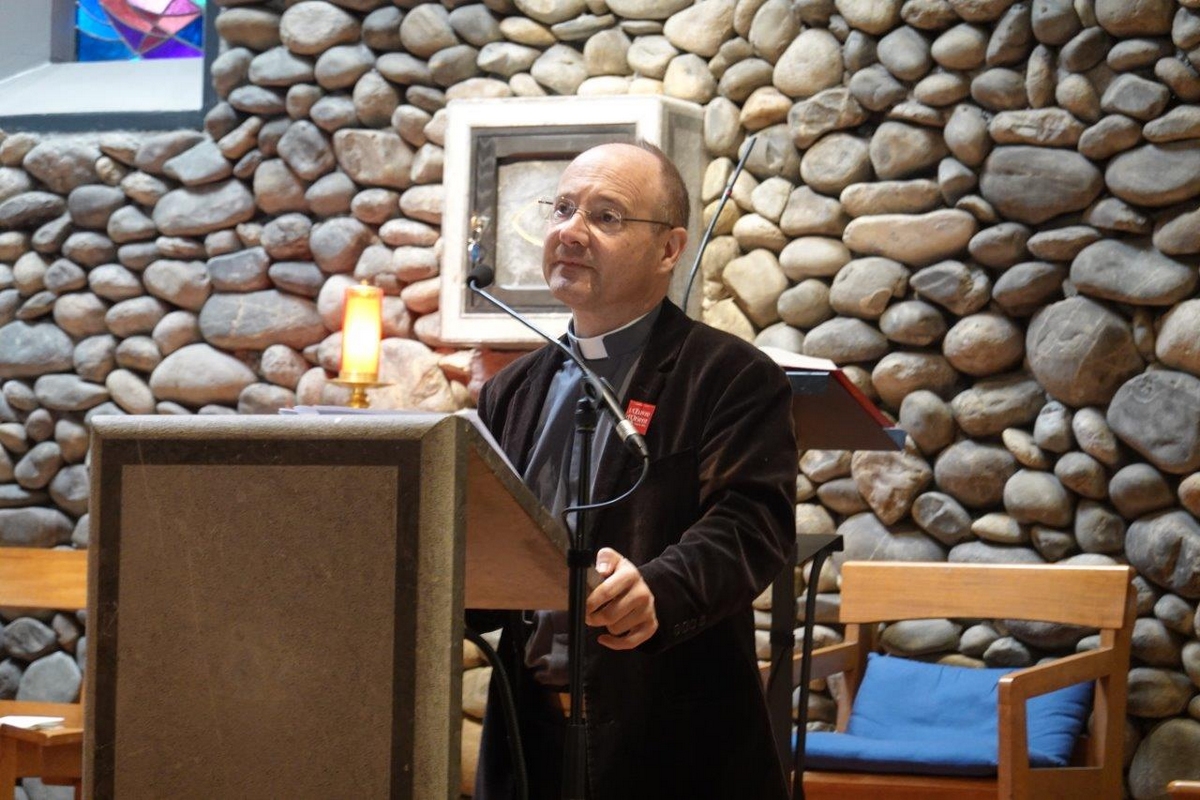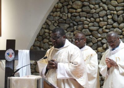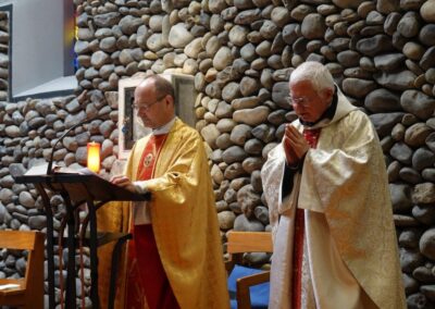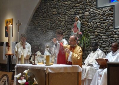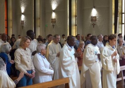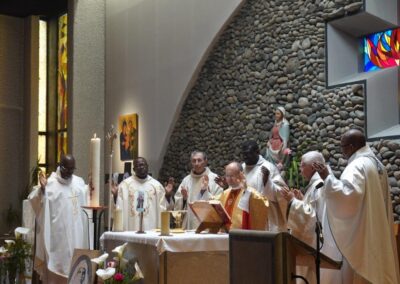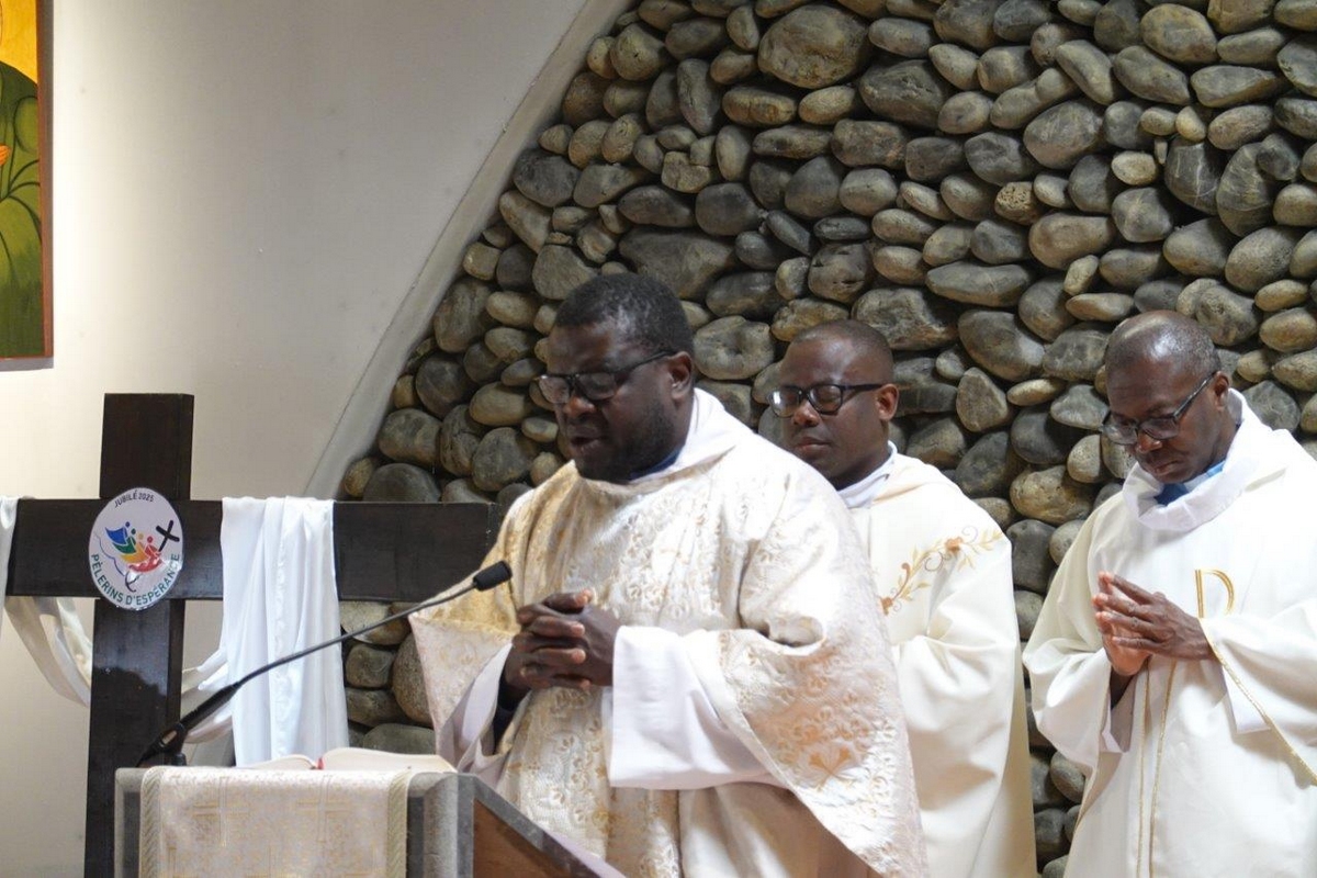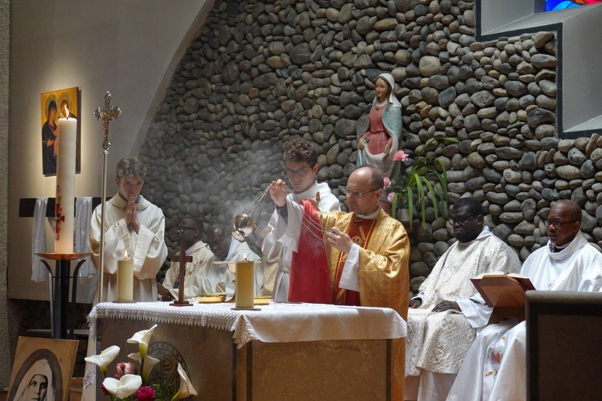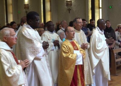 La messe a été célébrée selon le rite latin en l’absence du prêtre chaldéen retenu à l’étranger pour des raisons familiales. Elle a été présidée par le Père William-Marie Merchat, délégué du diocèse de Nîmes à l’Oeuvre d’Orient, enseignant à l’Institut Jean de la Croix, entouré du Père Sylvain Dansou, curé de la paroisse, des Pères de Bétharram de la communauté de la maison Saint-Michel, voisine : le Père Hervé Kouamé, supérieur, le Père Firmin Bourguinat et le Père Jean-Claude Djiraud, ainsi que du Père Carme Paul Le Camus et du Père Jean-Elysée de la communauté des Béatitudes de Nay.