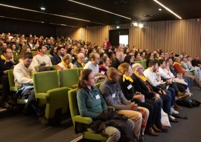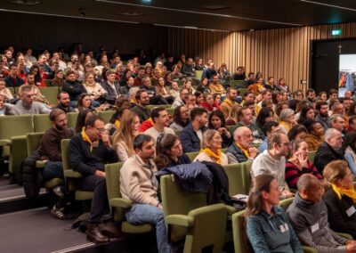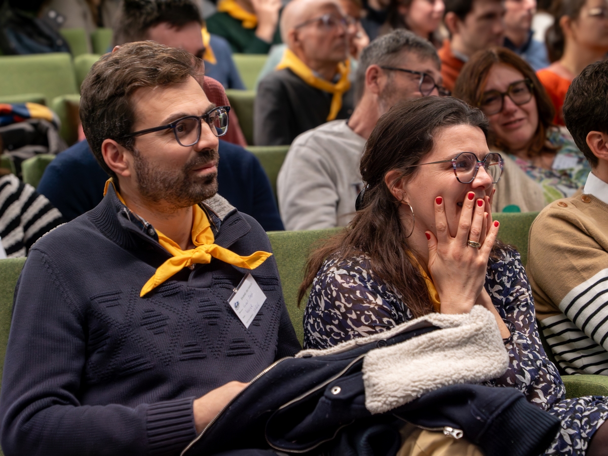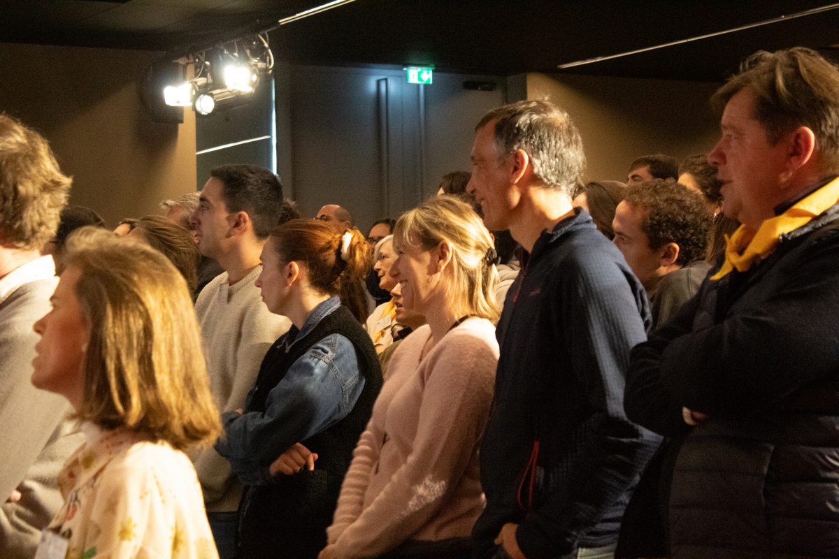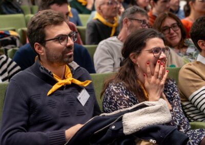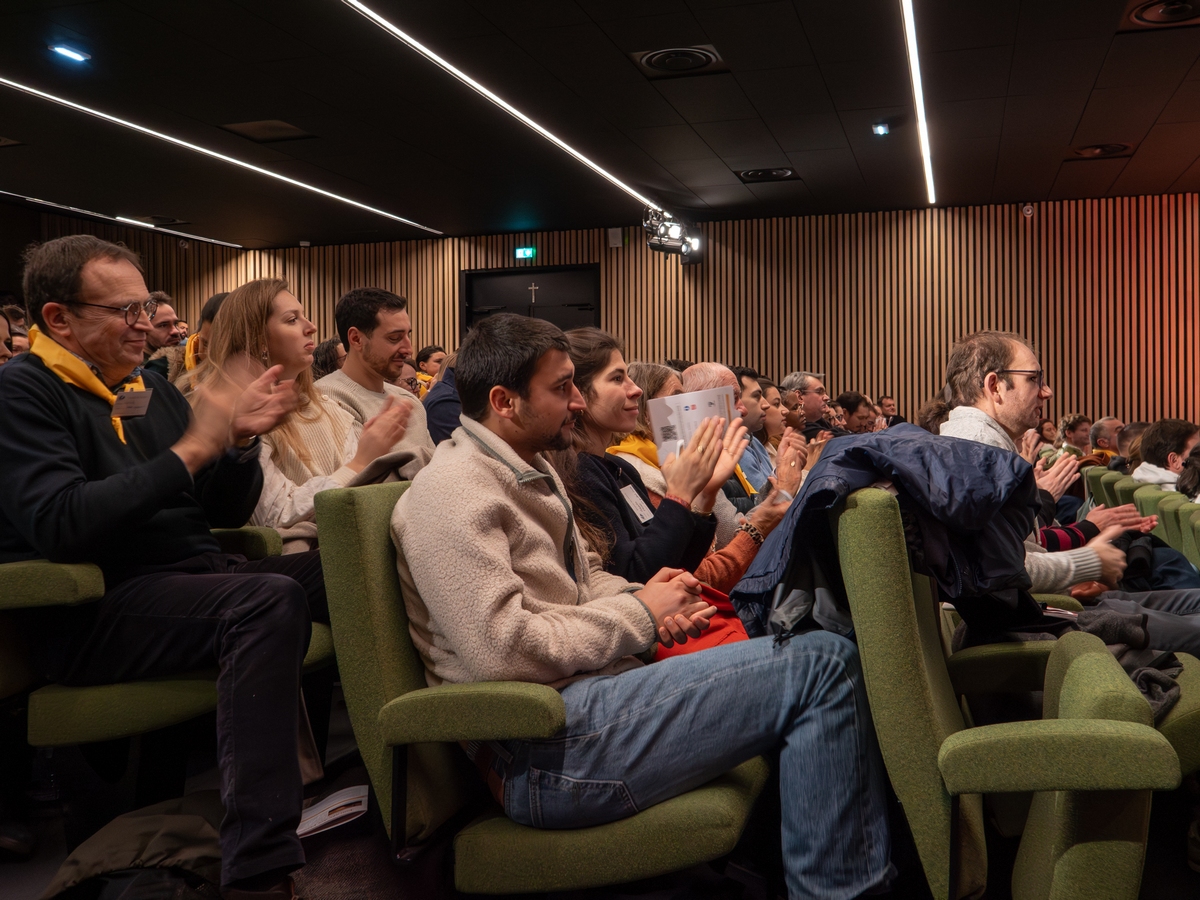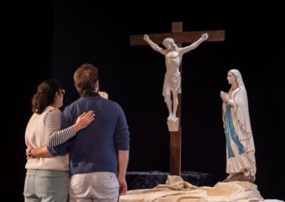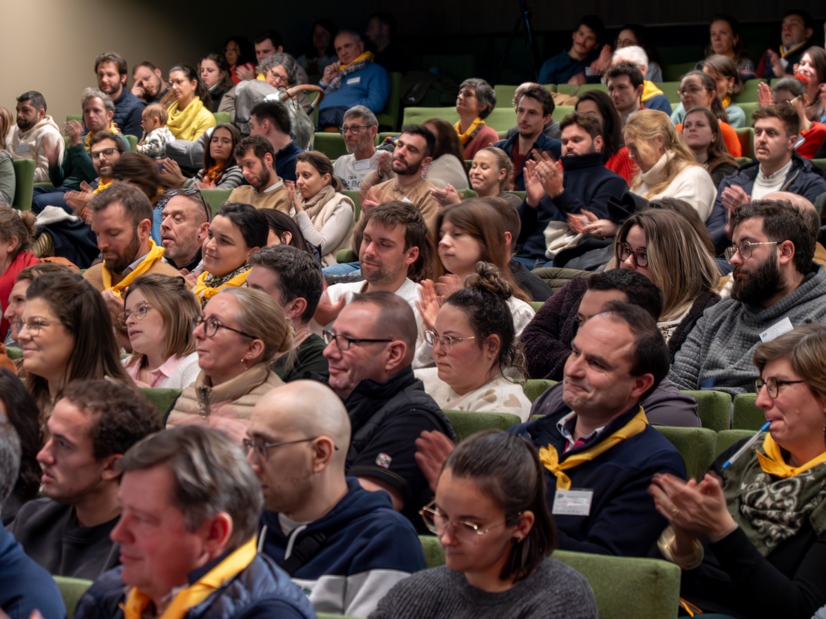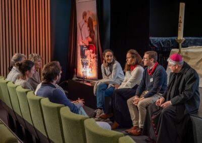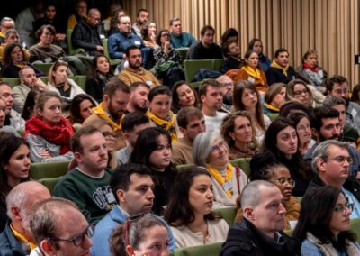 Tous se sont ensuite dirigés vers l’auditorium pour une matinée qui en aura certainement surpris plus d’un. Oratoire avec un majestueux Christ en croix et Marie priante, scénographie très pro, Claire et Rachel à la louange… tout était là pour donner une vision de l’Église en marge de certains poncifs ! Exit l’image « poussière et bricolage » !