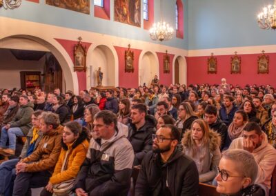 Après une présentation du programme de la journée et non sans rappeler que plusieurs communautés religieuses [1] prient dans le même temps pour tous les couples présents, ils rappellent le sens de cette journée : découvrir (ou redécouvrir) la foi chrétienne, laquelle beaucoup plus que des valeurs, est une rencontre vivante avec le Christ Jésus. Une journée présentée comme complémentaire de la préparation faite en paroisses, une journée d’expérimentation de la foi chrétienne. « La foi chrétienne c’est un chemin. C’est un chemin de bonheur pour nos couples, c’est un chemin de bénédiction pour nos familles, pour nos enfants, un chemin où notre amour peut grandir, s’approfondir grâce à Dieu malgré les inévitables épreuves de la vie. »
