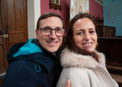 Le second couple nous livre deux parcours heurtés, une rencontre dans le cadre professionnel, des interrogations, des craintes et Jésus qui va les accompagner l’un et l’autre pour leur permettre de former le couple qu’ils sont aujourd’hui et qui leur permet de fêter leurs 6 ans de mariage et 3 enfants. Un parcours certainement pas linéaire pendant lequel ils se sont accordé des temps de réflexion, des temps de retraites et d’accompagnements spirituels pendant lesquels ils reçoivent ces 3 clés : « Consacrez une soirée par semaine exclusivement au couple », « Vivez une retraite de couple chaque année », « Célébrez vos anniversaires de mariage et vous rappelez régulièrement votre oui ».