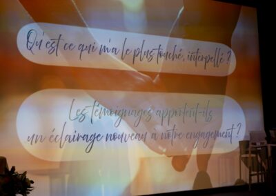 Il sera ensuite question de légitimité et maturité, de la perception de Dieu et du destin, des différences de pratiques religieuses qui ne sont pas forcément partagées, de la place du Seigneur au sein du couple, de « hiérarchisation » de l’amour… conjoint, enfant, Dieu…, des options entre postures sociétales et foi, de sexualité, du pardon bien sûr, mais aussi de mission, de transmission, d’annonce.