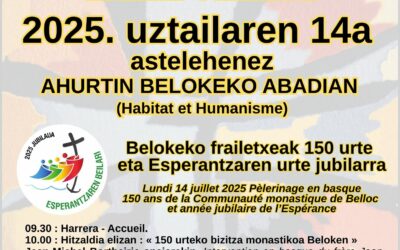 Aurten Euskal Herriko fededun guzieri beila bat euskaraz proposatzen dugu, 2025eko UZTAILAREN 14AN, ASTELEHENEZ, AHURTIN, BELOKEKO ABADIAN ospatuko...